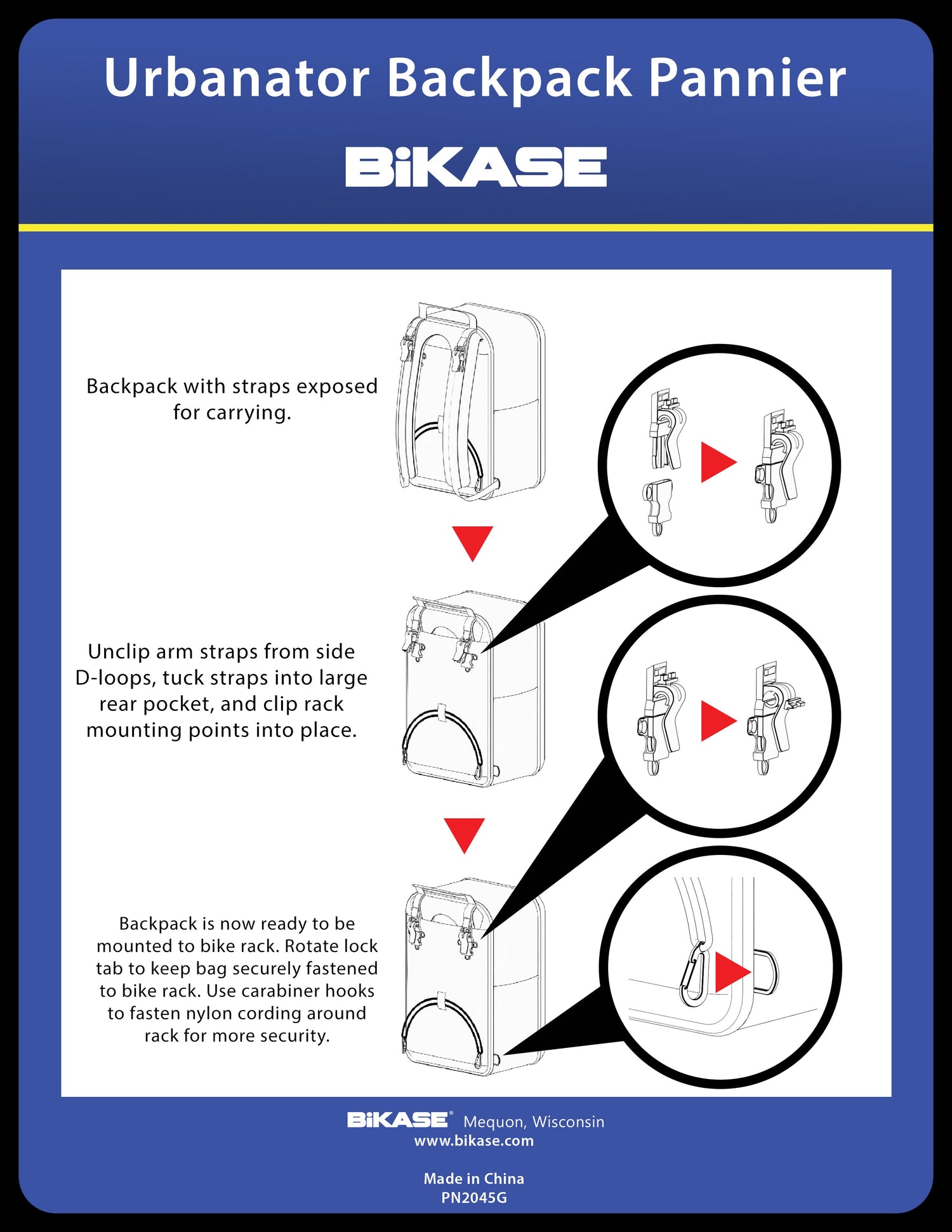 Converts from pannier to backpack in seconds! Designed by cyclists for cyclists!